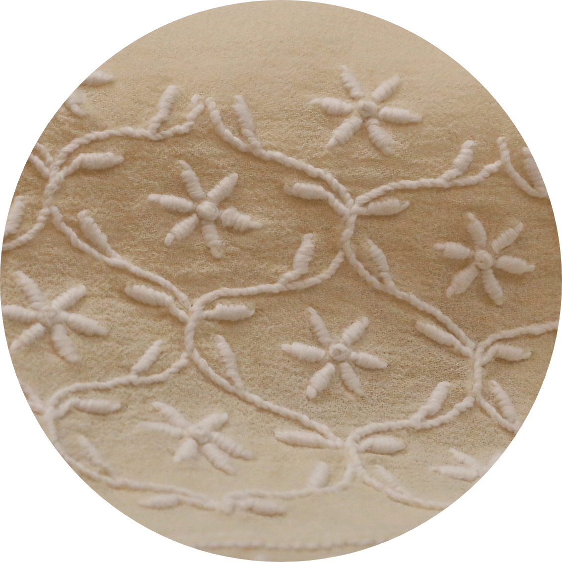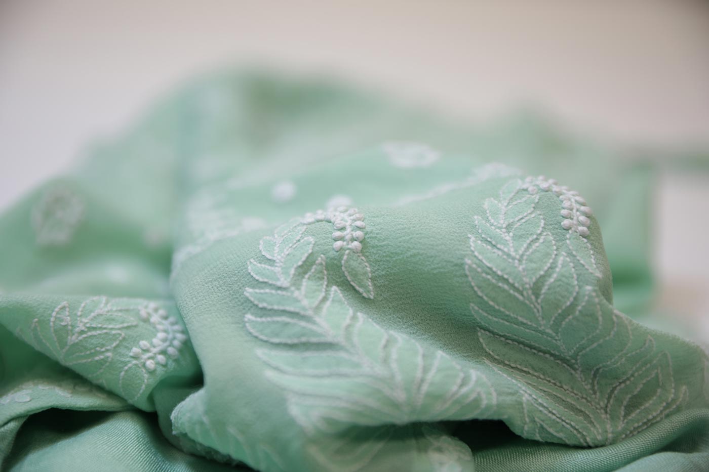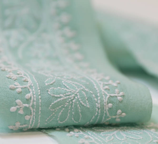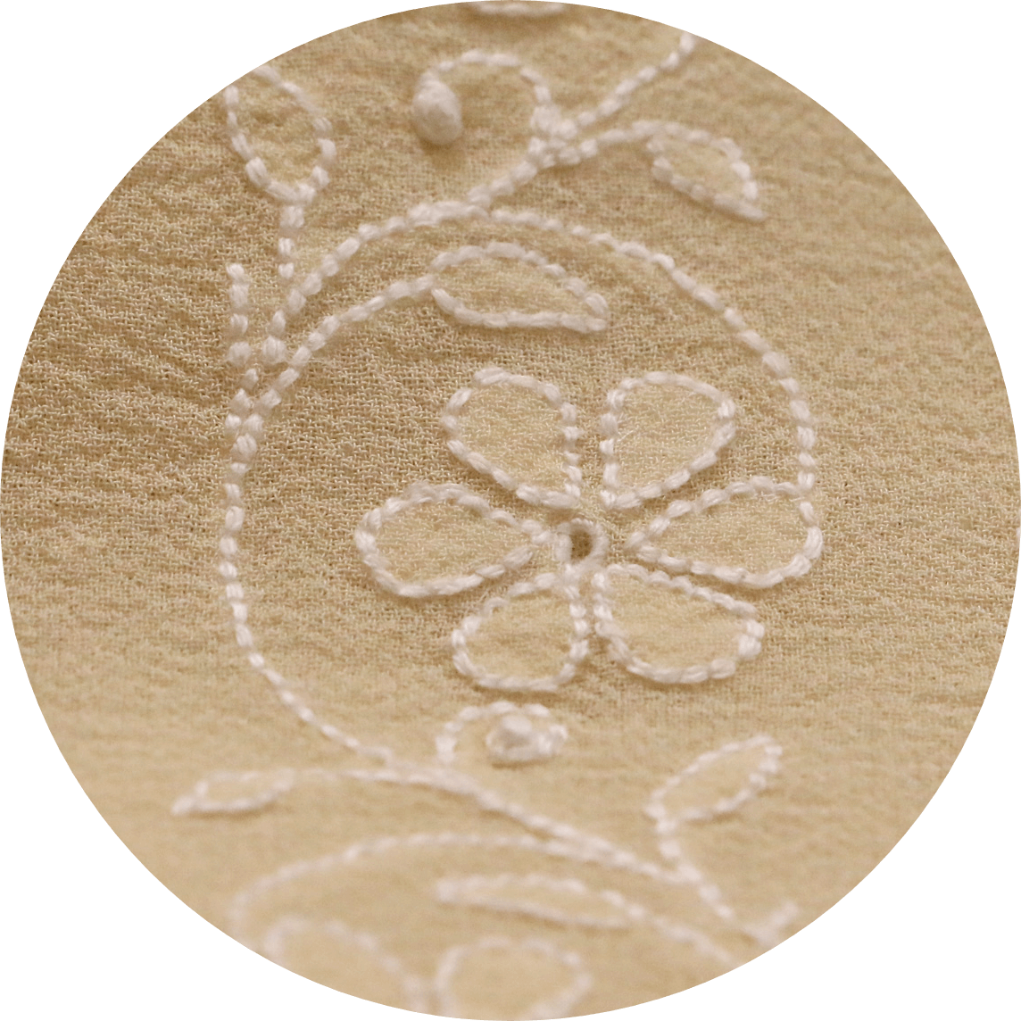The rarest one. This mesh-like stitch is inspired by royal architecture, and gives Chikankari its signature look. It is created by separating the strands of the warp and weft and tightening it to hold it in position. Now an almost extinct skill, known only to a handful of artisans.
